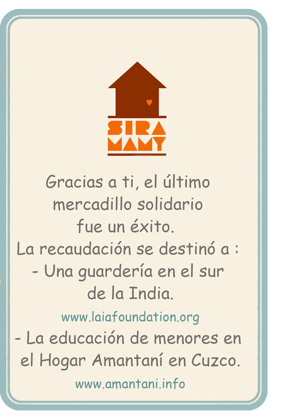 Del 4 al 8 de Junio, nuevo mercadillo Siramamy, en breve os iremos informando.