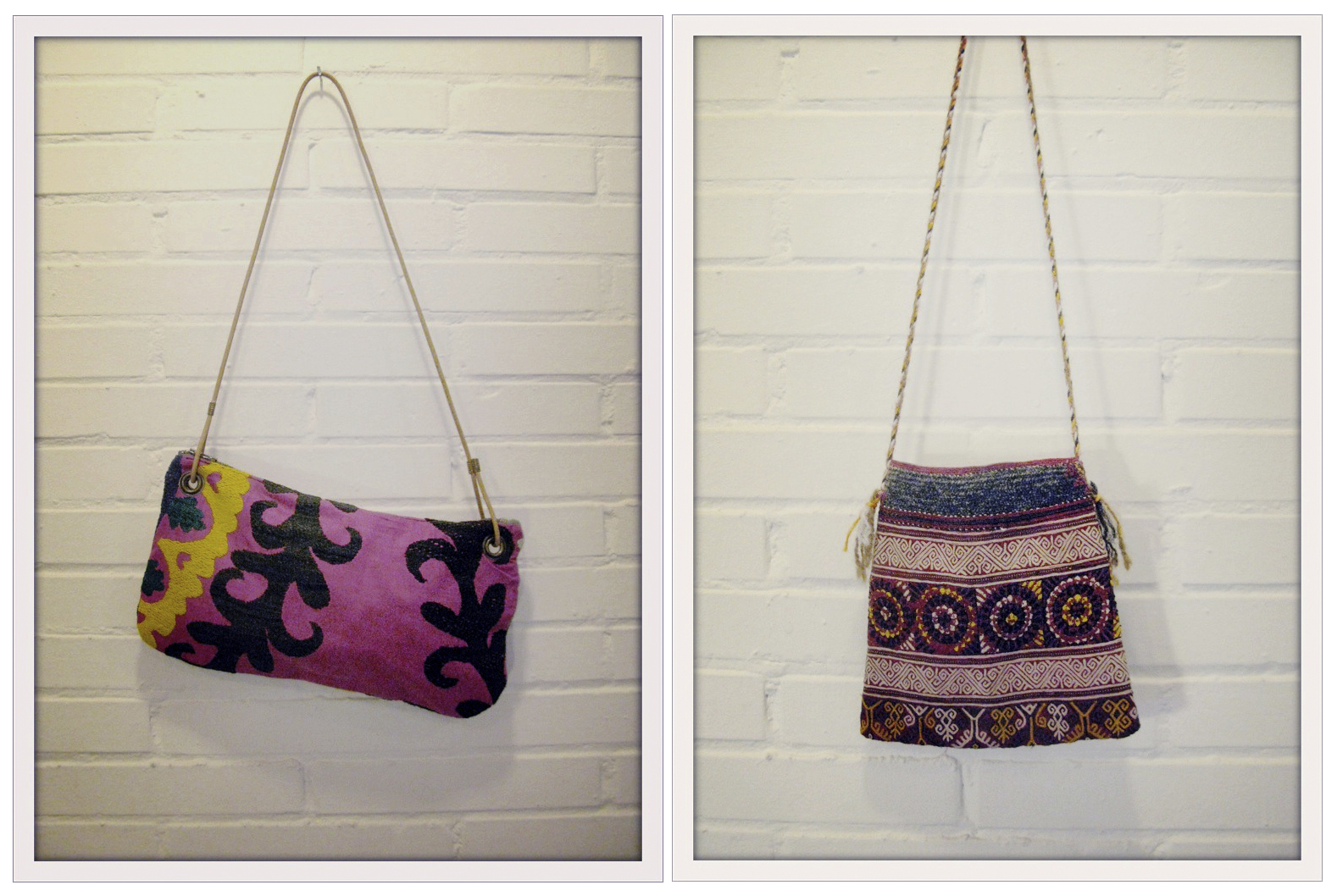 Bolsos con telas antiguas bordadas a mano de Tajikistan, Uzbekistán y Anatolia